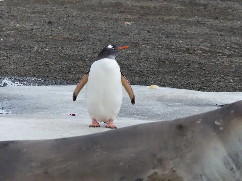 Orne Harbour ist ein idealer Ort, um Pinguine zu beobachten, die hier in großen Kolonien brüten. Eine Wanderung auf einen Gipfel wie Spigot Peak, bietet atemberaubende Ausblicke auf die umliegenden Berge, Gletscher und das Meer. Als Mensch fühlt man sich in dieser Welt aus Eis wie ein Fremdkörper.