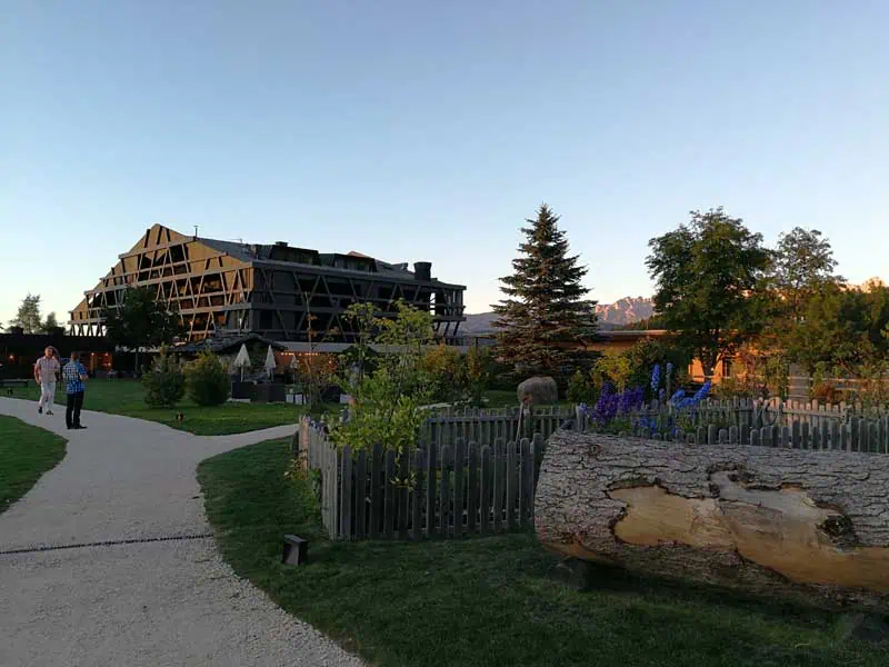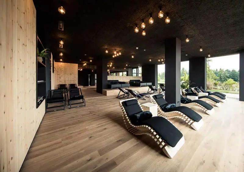 Das 2.000 Quadratmeter große Naturaspa steht auch ganz im Zeichen von Urkraft, Natürlichkeit und Nachhaltigkeit. Die Aussicht nach draußen, das Holz und die Naturtöne in den Räumen verbinden den Besucher mit der Umgebung. Die acht Saunen im Außen- und Innenbereich versprechen mit ihren heimischen Düften Entspannung und eine Auszeit vom Alltag. In der neuen Outdoor-Sauna „das ritual“ etwa bietet das Spa-Team spezielle Rituale und Aufgüsse in ruhiger Atmosphäre an, wie z.B. ein Aufguss begleitet von dem Klang der Klangschalen, ein Erlebnis, das ich nicht missen möchte. Verschiedenen Ruheräumen mit Blick auf die Gebirgslandschaft und im Sommer auch große Rasenflächen bieten genügend Platz zum Entspannen. Ein absolutes Highlight ist der 25 Meter lange Infinity-Sole-Pool, wo man quasi das ganze Jahr über in die Weite der Landschaft schwimmen kann. Ein sehr gut ausgestatteter Fitnessraum, verschiedene Behandlungsräume für Gesichts- und Körperanwendungen mit heimischen Kosmetikprodukten, sowie eine große Gartenlandschaft mit Whirlpool, Kneipp-Parcours und vieles mehr runden das Angebot ab.