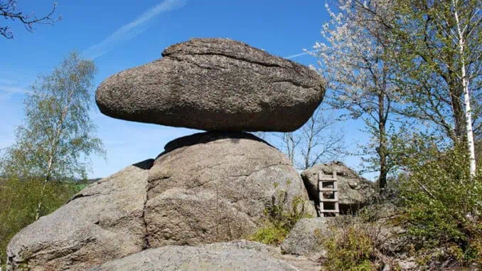 Der Schwammerling in Rechberg: Der Schwammerling ist als besonders seltenes Naturdenkmal nicht nur das Wahrzeichen der Gemeinde Rechberg, sondern auch im Logo des Naturparks Mühlviertels verewigt. Durch Wollsackverwitterung entstand diese ungewöhnliche Felsformation, die auch als Wackel- oder Schaukelstein bezeichnet wird. Der ovale Granitblock ruht sicher auf einem 3 m hohen Felsblock und ähnelt einem überdimensionalen Pilz. Als einer der schönsten Wanderungen im Mühlviertel führt der Naturparkweg in Rechberg zu diesem außergewöhnlichen Platz.