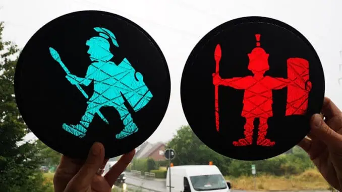 Bergkamen im Ruhrgebiet ist seit kurzem um eine Attraktion reicher: Die Kreisstadt in Nordrhein-Westfalen verzückt Passanten an der Jahnstraße mit den deutschlandweit ersten Ampeln mit Römermotiv. Legionäre mit Schild und Speer signalisieren den Fußgängern bei Grün, dass der Weg über die Straße frei ist. Die neuen Ampelmännchen haben einen historischen Hintergrund: Im Stadtteil Oberaden befand sich in der Antike das größte Römerlager nördlich der Alpen – mehrere Legionen mit bis zu 30.000 Soldaten waren hier stationiert.