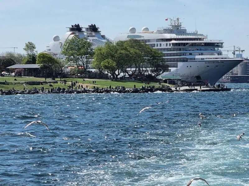 Am Hafen ist mit Galataport ein neues Viertel entstanden, das alle Facetten des Lebens, von Kultur, Gastronomie, Shopping und Unterhaltung vereint. Aber vor allen Dingen ist es auch ein riesiges Kreuzfahrtterminal, wobei davon kaum etwas zu sehen ist, bis auf die Schiffe, die direkt an der Flaniermeile anlegen und eine Wand, die dann hochgefahren wird. Alles andere erfolgt unterirdisch in sechs riesigen Kellergeschossen.