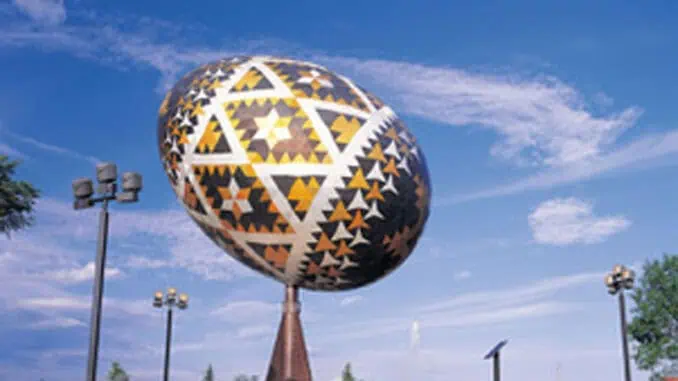 Die Ostereisuche gestaltet sich in Vegreville einfacher als anderswo. Denn in dem kleinen Örtchen am Yellowhead Highway, rund 100 Kilometer östlich von Edmonton, kommen Sie am größten Osterei der Welt gar nicht vorbei. Das ukrainische Ei (Pysanka) misst in der Höhe fast zehn Meter und in der Breite knapp acht. Und es ist gut ausbalanciert. So tanzt es auf seinem zwölf Tonnen schweren Sockel aus Stahl und Beton wie ein Wetterfähnchen im Wind. http://www.vegreville.com