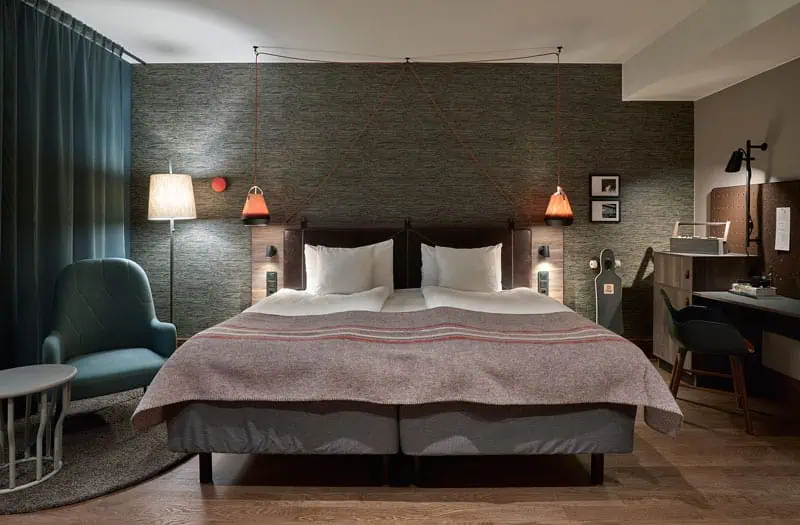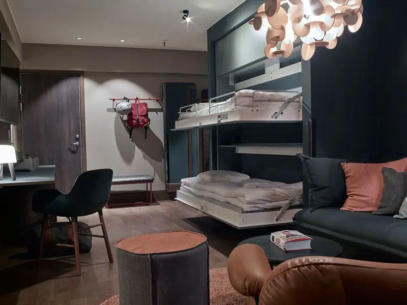 Die 494 Gästezimmer reichen von smarten „Schlaf-Kabinen“ bis hin zu geräumigen Suiten mit einem herrlichen Blick über Stockholm. Manche haben eine gemütliche Couch direkt am Fenster. Allerdings haben auch einige wenige Zimmer kein Fenster. Die Zimmer sind für Haustiere geeignet und mit Schlafcouches und Etagenbetten ausgestattet. Die Einrichtung ist modern und komfortabel, wenn es auch Schränke oder größere Ablagen gibt.