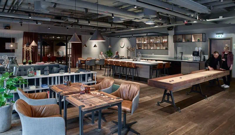 Das 494 Zimmer große Haus legt Wert auf die Kommunikation der Gäste untereinander. Es stehen ein Spielzimmer, ein Kino, eine Lounge, eine Bibliothek, ein Restaurant und eine Bar zur Verfügung. Manche Zimmer haben eine Verbindungstür zu einem gemeinsamen Wohnzimmer für bis zu zwölf Personen. Auf den Fluren vor den Aufzügen stehen Tischtennistische, die auch rege genutzt werden.