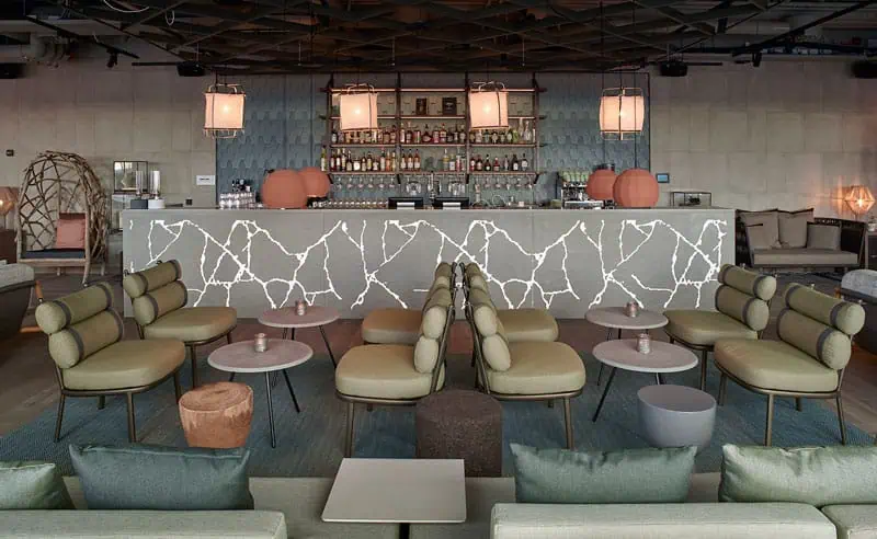 Wer es etwas ruhiger möchte, der kann für einen kleinen Aufpreis, sich im Nest wohlfühlen. Das Nest ist ein wirkliche ruhiger Wohlfühlbereich auf dem Dach des Hotels mit einem 360 Grad Rundumblick, einem Infinity-Outdoorpool, einem SPA mit Sauna und Fitnessraum, aber auch einer exklusiven Lounge, wo man nicht nur morgens entspannt in ruhiger Atmosphäre frühstücken kann, aber auch den Tag über und vor allen Dingen abends frische Säfte, kleine gesunde Snacks, aber vor allen Dingen auch Cocktails bei einer berauschenden Aussicht genießen kann.