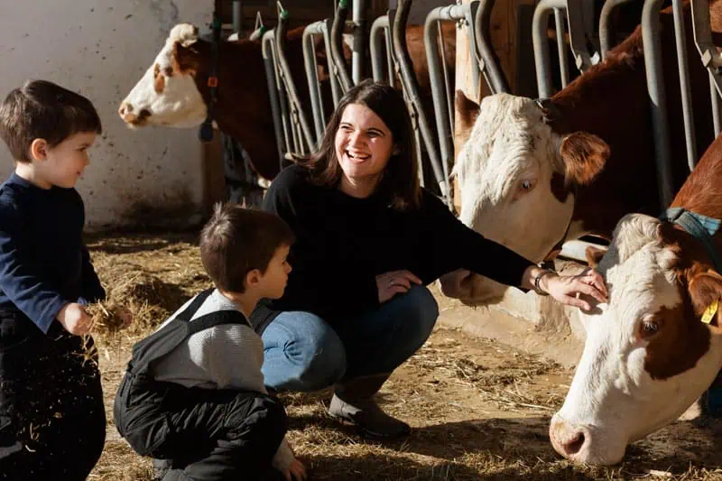 In der Wohnung gegenüber wohnt eine Familie, deren Kinder es genießen, all die Tiere, die sie ansonsten nur aus dem Fernsehen und Bilderbüchern kennen, mal ganz nah erleben zu dürfen. Die Kinder dürfen beim Füttern zuschauen und die Tiere streicheln. Ganz besonders beliebt ist natürlich der Tiernachwuchs, die jungen Kätzchen, Hasen, Schafe und Ziegen. So stellt sich auch schnell bei deren Eltern ein entspanntes Urlaubsgefühl ein, wenn die Kinder beschäftigt und glücklich sind.