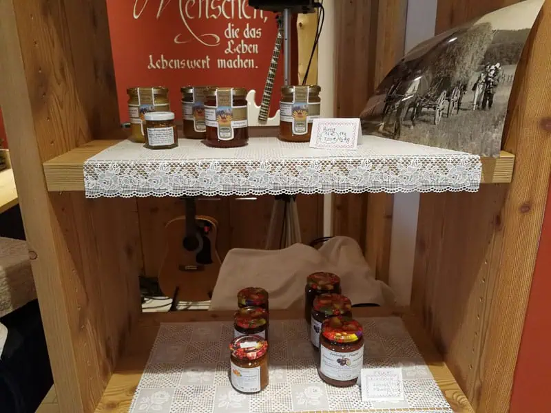 Fast immer bieten die Gastgeber hofeigene und regionale Spezialitäten fürs Frühstück oder für Zuhause an, Schmalz und Speck, Eier von glücklichen Hühnern, Ziegenkäse, naturtrüber Apfelsaft oder Traubenmost von den eigenen Reben u.v.m…