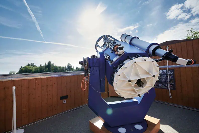 Berühmt wurde der Pfarrer freilich mit seiner Gesundheitslehre, nach der sich auch die Landschaftsgestaltung im Kneipp-Aktiv-Park richtet. Hier kann eine erste Kneipp-Pause eingelegt werden – im Meditationsgarten, am Arm- und Tretbecken oder auf der Himmelstreppe, die zu Ruheplätzen führt. Weiter geht es in den Bannwald, eines der schönsten Waldgebiete des Allgäus. Der leichte Anstieg wird mit einer herrlichen Sicht auf Ottobeuren belohnt, die bald mit dem spannenden Einblick in den Sternenhimmel konkurriert, den die Allgäuer Volkssternwarte mit einem 60 cm-Spiegelteleskop bietet. Und für eine letzte Dosis Kneipp wartet auf dem Rückweg entlang des idyllischen Motzabachs noch eine Kneippanlage.