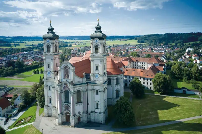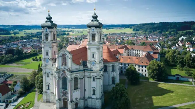 Der erste Höhepunkt der Wanderung lässt nicht lange auf sich warten – das Wahrzeichen von Ottobeuren: die spätbarocke Basilika zählt unter anderem zu den Hauptattraktionen der Oberschwäbischen Barockstraße. Sebastian Kneipp wurde hier getauft und feierte in der Kirche sein erstes Heiliges Messopfer.